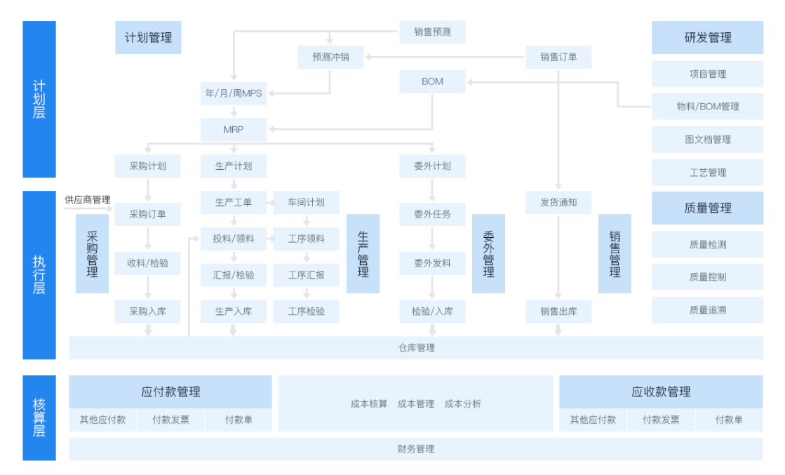 圍繞精細化計劃管控、透明化化生產(chǎn)執(zhí)行、全面質(zhì)量管理等作為落地支撐,助力電子行業(yè)企業(yè)從訂單接收、計劃、生產(chǎn)執(zhí)行到售后及追溯的全流程管控